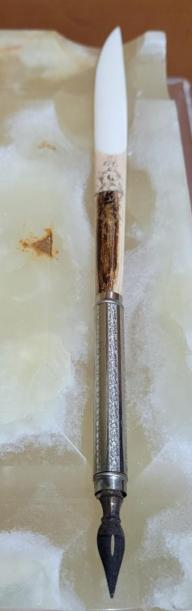 Piesa aparține stilului de la sfârșitul secolului al XIX-lea (1875-1900), perioadă care coincide cu apogeul păstoririi sale la Iași. Ea reflectă gustul epocii pentru materialele naturale semiprețioase prelucrate cu rigoare geometrică. Călimara nu este un obiect izolat, ci face parte dintr-un ansamblu care include suportul pentru penițe, un creion cu mâner din fildeș și un condei/toc cu mânerul din fildeș adaptat să-și îndeplinească și funcția de cuțit pentru corespondență.